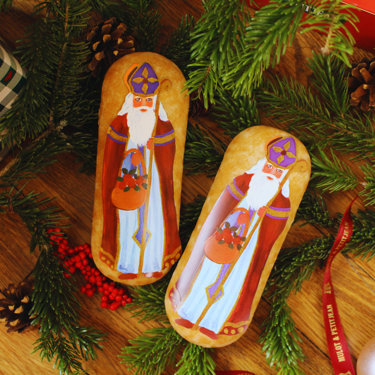 Ce pain d'épices glacé et sa chromo en forme de Saint-Nicolas est un grand classique de cette saison.