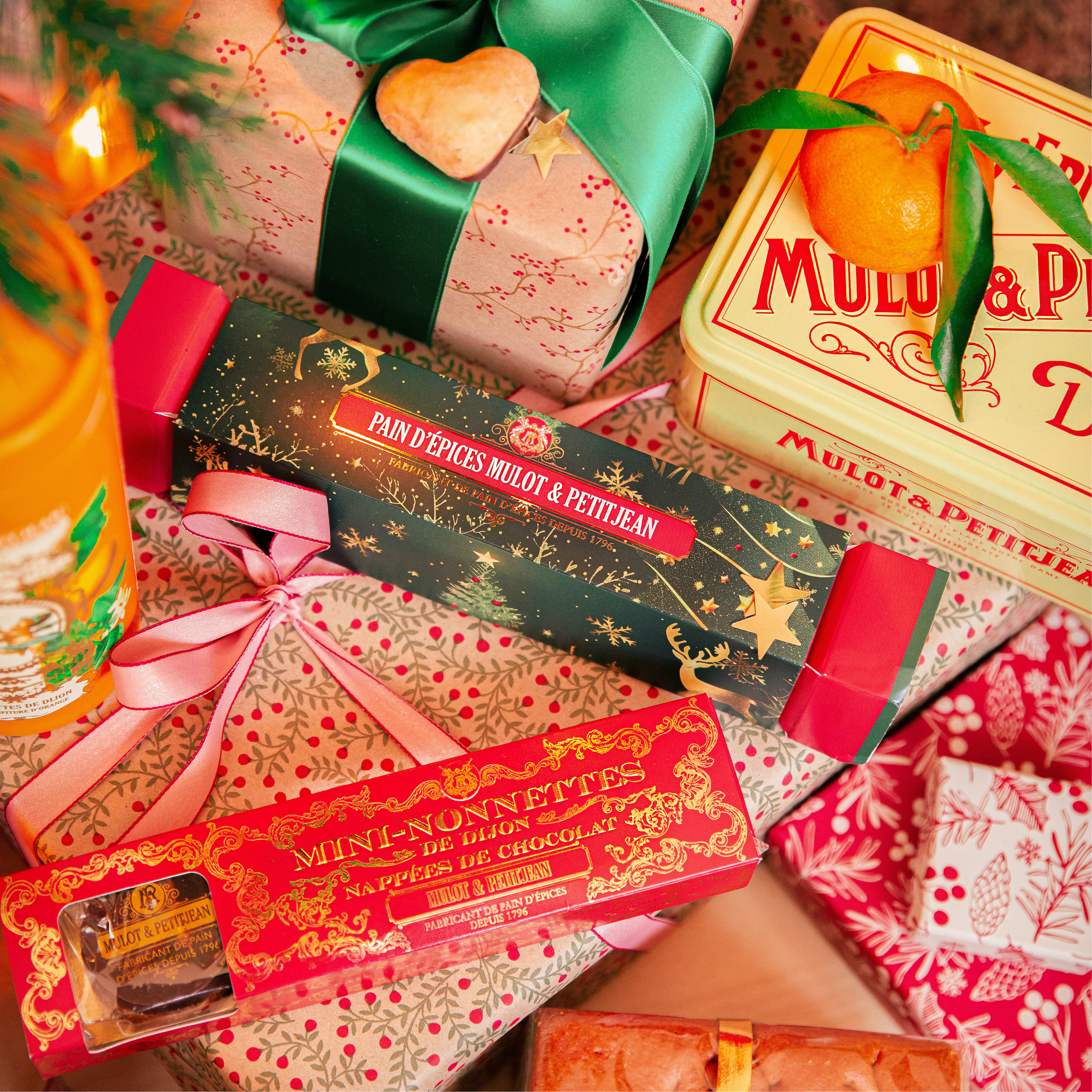 Découvrez notre écrin de 4 mini-nonnettes fourrées à la confiture de framboise, nappées d'un délicieux palet de chocolat et logotées Mulot & Petitjean.